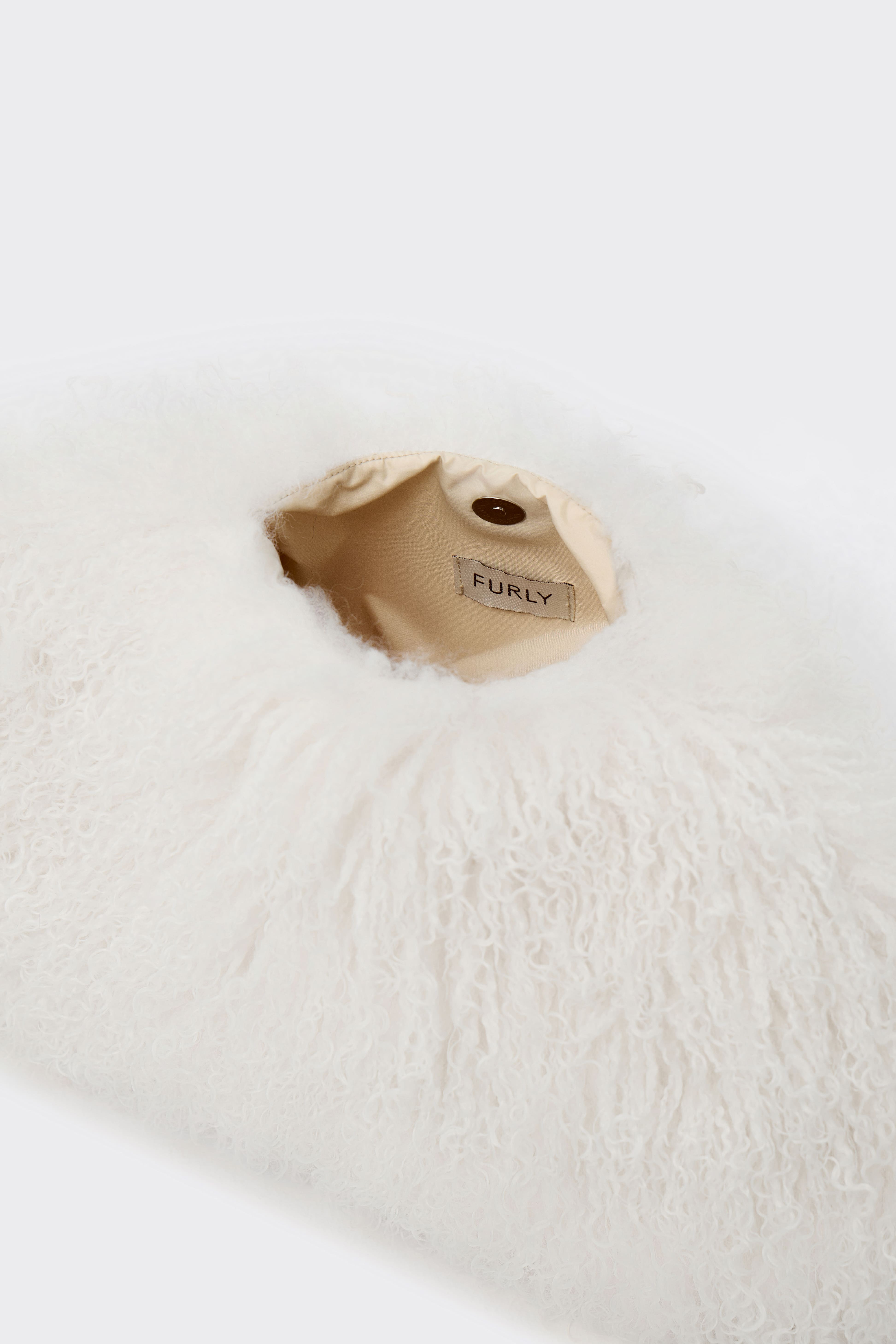 Сумка из экомеха на магнитной кнопке. Модель выполнена из высококачественного длинного ворса, имитирующего натуральный мех ламы.